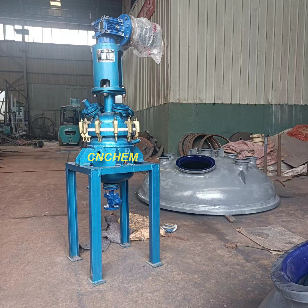 ??????????????????????? 專業設計,精工制作,我公司為滿足工廠、院校、科研單位等實驗室的試驗需要,開發出了以小型搪瓷反應釜(即小型搪玻璃反應罐)為主體的實驗室用搪瓷小型成套設備,配套有小型的搪瓷管件、換熱器、儲罐等設備。搪瓷實驗室用小型反應釜規格為5L—50L,全套配置包括釜體、釜蓋、電機(防爆或普通)、減速機(渦輪渦桿免維護減速機,擺線減速機等)、攪拌器(錨式63或85rpm, 槳式85或130rpm, 葉輪式85或130rpm)、加強型溫套管、放料閥(上展或下展)等,加熱方式有兩種:(1)通用型夾套,外置導熱油爐或鍋爐進行加熱或冷卻;(2)電加熱:在夾套內預置好電加熱棒,放入導熱油進行加熱,如需冷卻,在靠近釜壁再加冷卻水盤管。支撐方式有兩種:(1)托耳:需要自制操作平臺;(2)支腿: 三根支腿,或四根框式支腿,落地式支撐。工作壓力≤10KGS,工作溫度-20℃—200℃,嚴格按照GB150-1998<鋼制壓力容器>和<壓力容器安全技術監察規程>以及GB25025-2010《搪玻璃設備技術條件》等有關標準設計制作,具有耐腐性強、操控簡便、使用壽命長等特點。